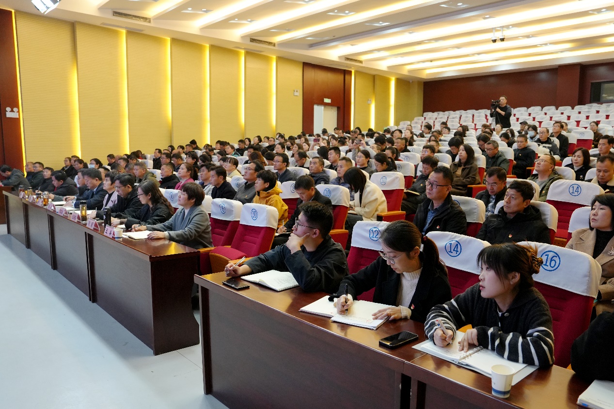11月24日下午,我校在三楼报告厅举行学习贯彻党的二十届四中全会精神市委宣讲团宣讲报告会。徐州市委宣讲团成员、中共徐州市委党校副校长聂磊教授来校作宣讲报告。校党委理论学习中心组在徐成员,校全体党员、全体中层干部、思政课教师、辅导员、各民主党派负责人、各级人大代表、政协委员和学生代表等参加本次报告会。校党委副书记、校长张军主持报告会。